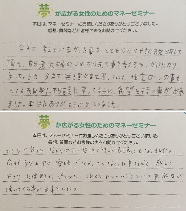 マイホーム実現 投稿日 2017年10月4日 カテゴリー お客様の声 カテゴリー 住宅資金 カテゴリー 未来の安心 本日のマネーセミナー 現在賃貸マンションでお住まいのお客様 将来の蓄えと備えのバランスをとりながら、 マイホーム実現に向けてのおはなし 家の話になるとワンちゃんも気になりお父さんの膝の上で真剣なご様子