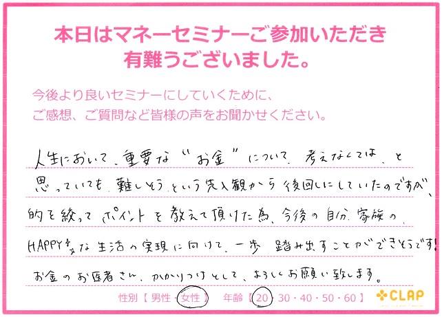 正解のない未来 投稿日 2018年2月1日 カテゴリー お客様の声 カテゴリー 未来の安心 カテゴリー 老後資金 本日のマネーセミナー。 20代の女性とライフプランを考えました。 いろいろな家族があり、いろいろな考え方があります。 そして、それらは時間が経つと変化もします。 だから正解がひとつとも限りませんし、もしかしたらないのかもしれません。 それでも未来のイメージを持つことは、大切だと思います。 一歩踏み出すお手伝いができてよかったです。