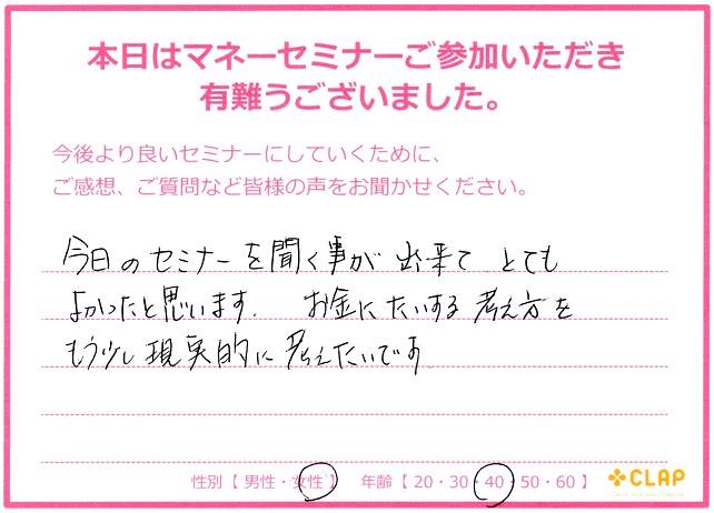 本日のマネーセミナー。 20代の女性とライフプランを考えました。 いろいろな家族があり、いろいろな考え方があります。 そして、それらは時間が経つと変化もします。 だから正解がひとつとも限りませんし、もしかしたらないのかも […] -